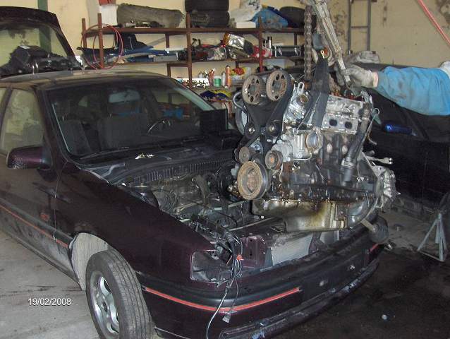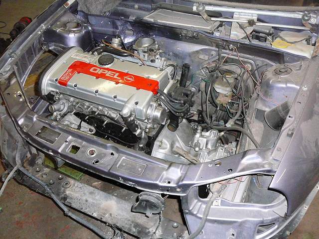 Allerdings hätte ich nie gedacht das die suche nach einem vernünftigen spender so schwierig und nervenaufregend sein kann. Wenn mann im Internet guckt haben angeblich alle Motoren und Autos um die 120.000 km runter. Was bei mind. 15 jahre alten autos eigentlich eine seltenheit ist. Dann endlich anfang Januar fand sich ein Vectra a bj. 93 mit nachweisbaren 123.000 km am rande bayerns. Also die Kohle geschnappt Auto und Hänger besorgt und auf gehts auf die 550 km weite Reise. Als wir dann wieder in der Heimat waren ging es gleich an den Ausbau des 1,4l aggregats. Dabei kahm dann der große Schock es kahmen immer mehr durchgerostete Stellen zum vorschein.