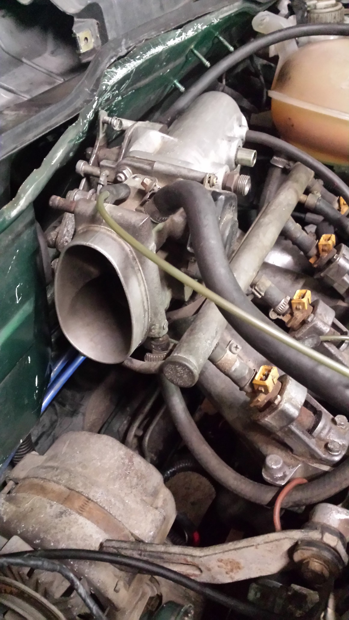 Dann kam die Ansaugbrücke vom Schweisser zurück. Mussten die Spritzwand im oberen Teil noch ein wenig mit dem Hammer bearbeiten, nun passt das Saugrohr mit ein wenig "Luft" zur Spritzwand.