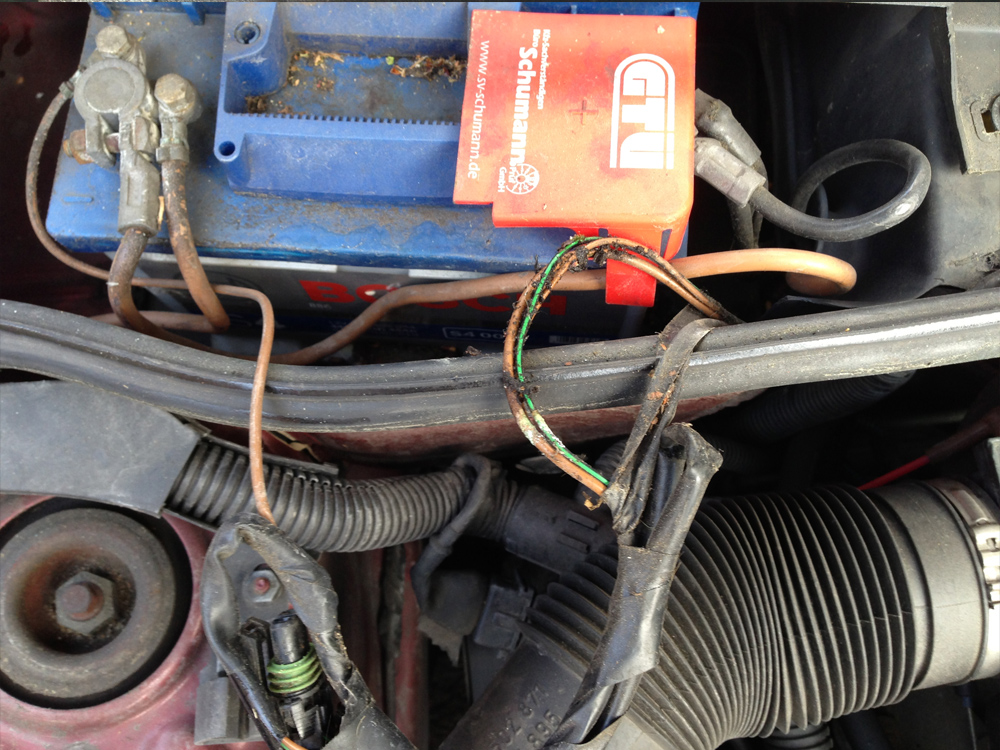 Könnte das Kabel an der Batterie was damit zu tun haben. Sieht nass aus. Die Isolierung pellt sich ab etc.