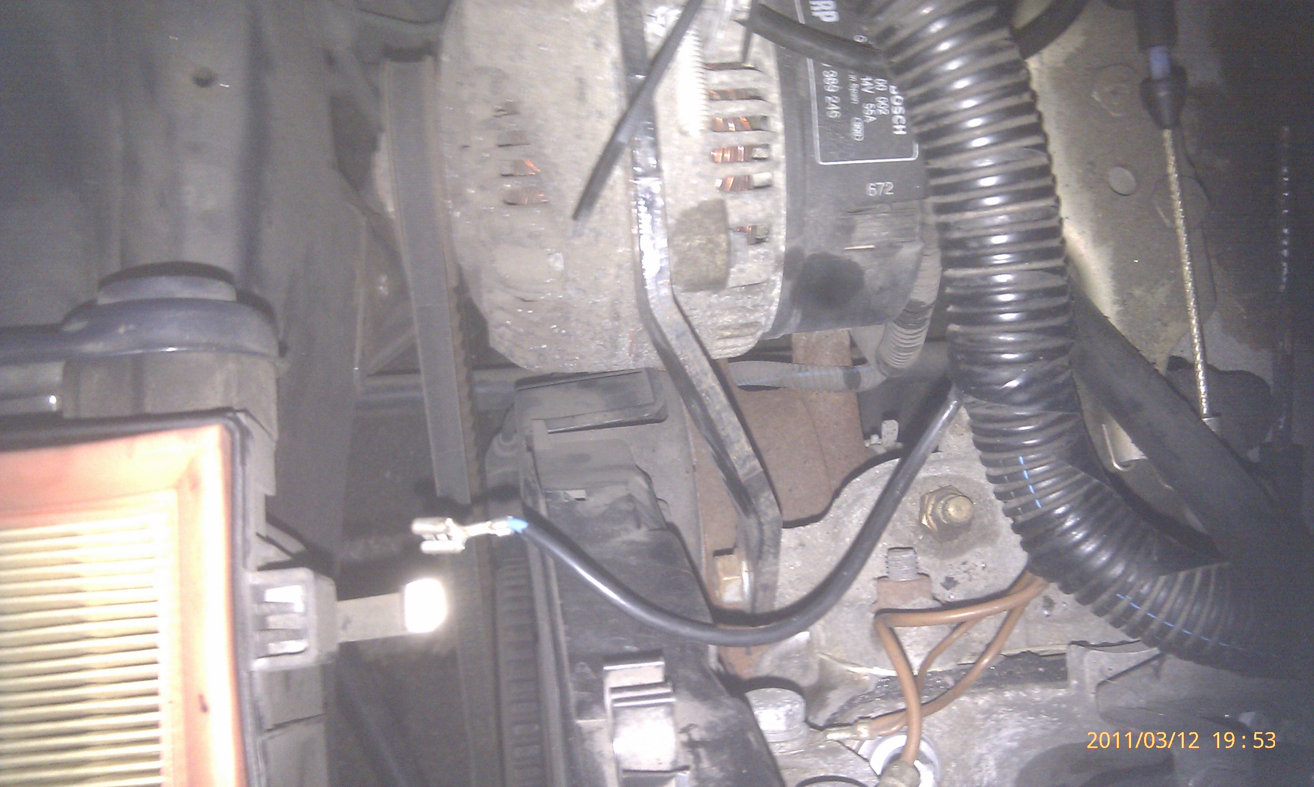 Achja ist direkt hinterm Motor vor der lichtmaschine. Da wo die ganzen Massekabel sind.