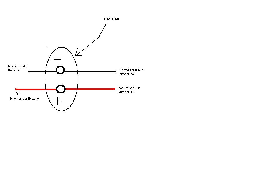 du gehst mit dem plus kabel was zur endstufe geht an das powercap und von da aus zur Endstufe.