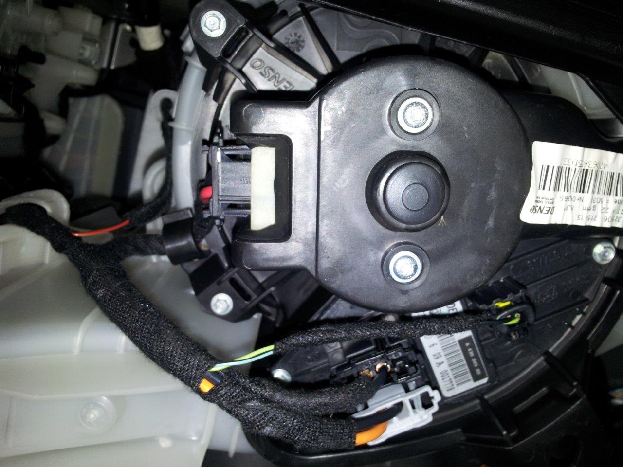 Das mit dem Vorwiderstand entfällt hier (sind im Klimabedienteil eingebaut: wenn defekt muss die Einheit neu). Ich habe von Fällen gehört, wo es Probleme unten am Stecker gegeben hat. Unten auf 9 Uhr, die beiden: schwarz und grau. Zieh die mal ab.