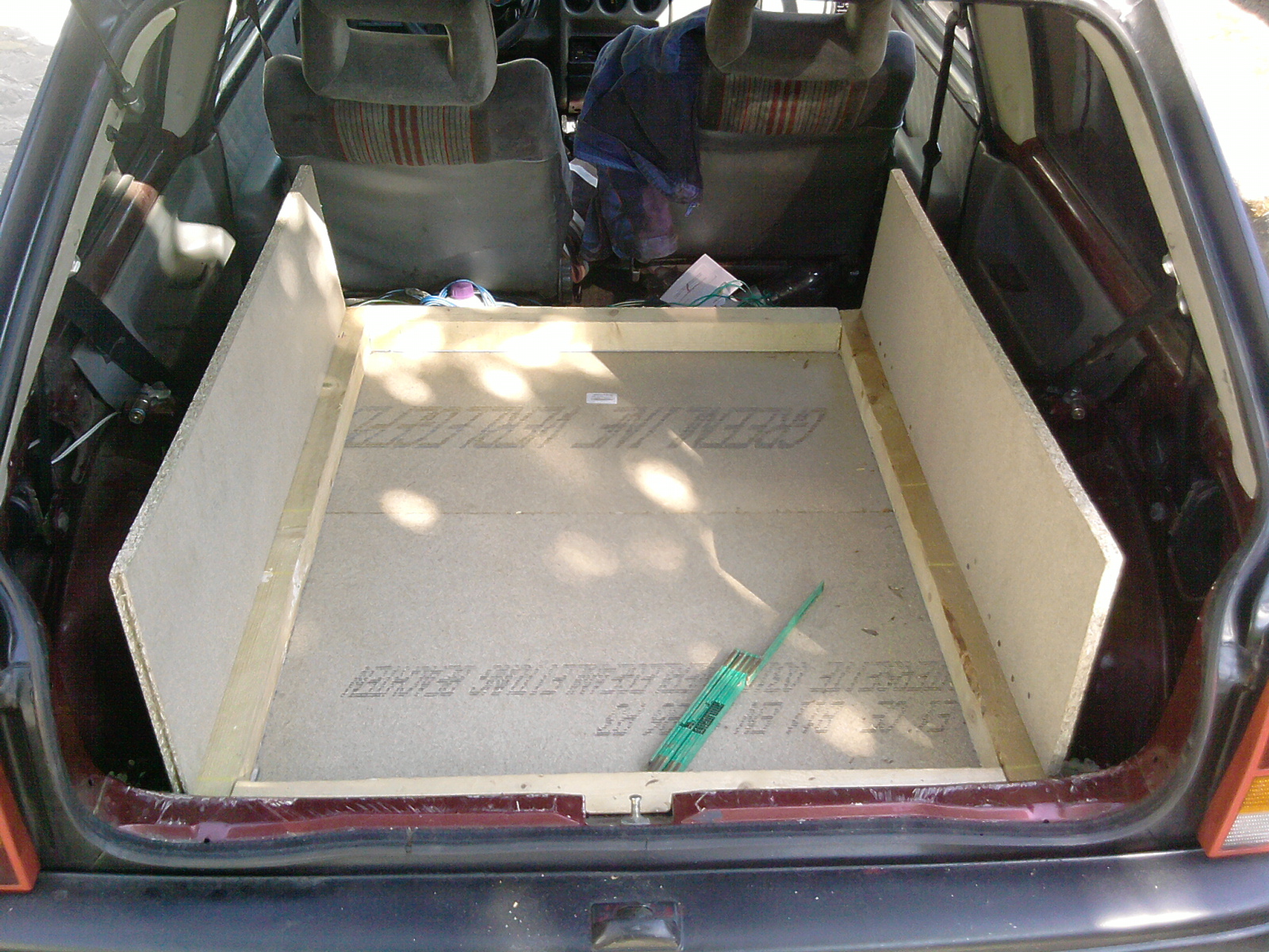 Die Rückbank kommt raus ,eine 22mm spanplatte wird