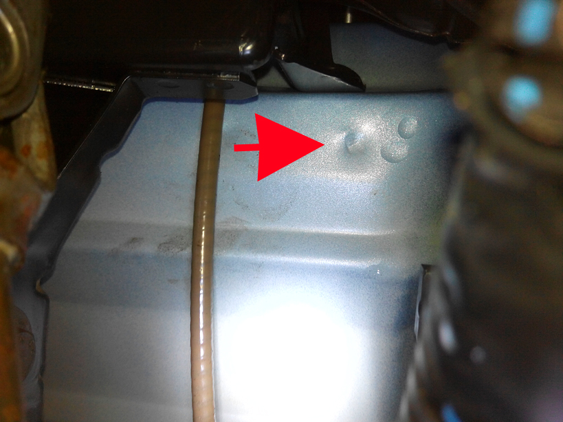 Das Wasser muss irgendwo von oben kommen. Auf dem Foto sieht man, dass es oben am Blech hängt. Ist vom Bremspedal aus nach oben fotografiert.