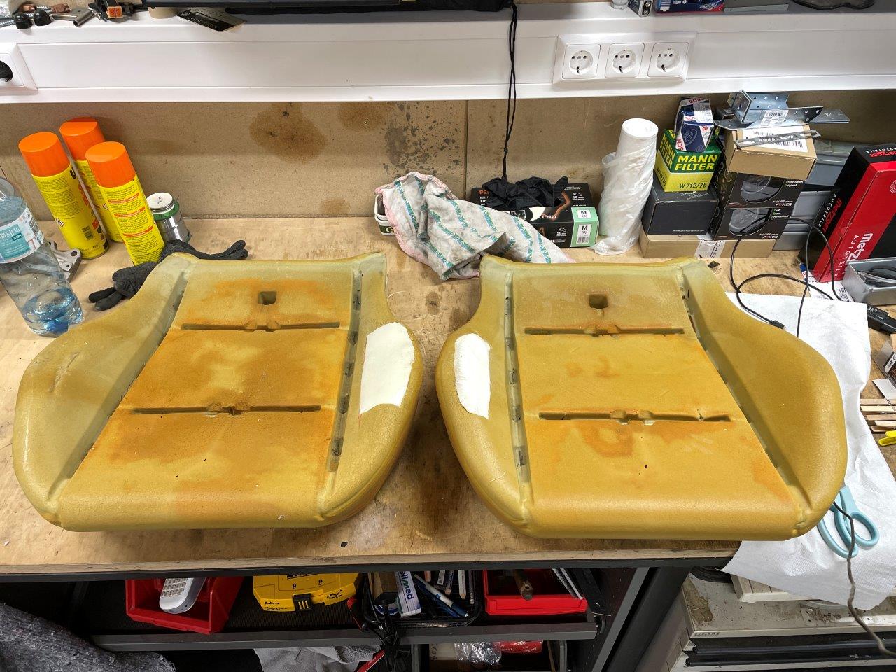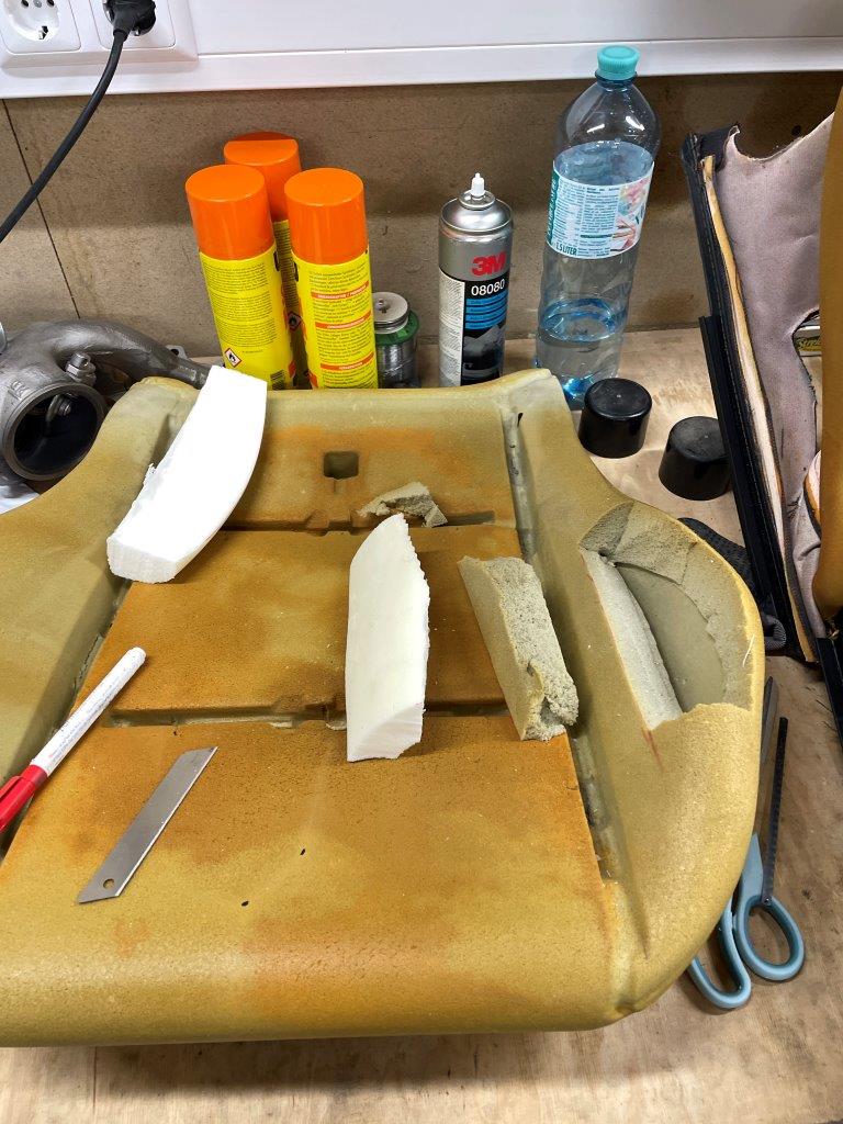 Ich suche aktuell noch das richtige Material mit dem ich den Schaumstoff noch final "überziehen" kann bevor ich wieder den Bezug überstülpe.