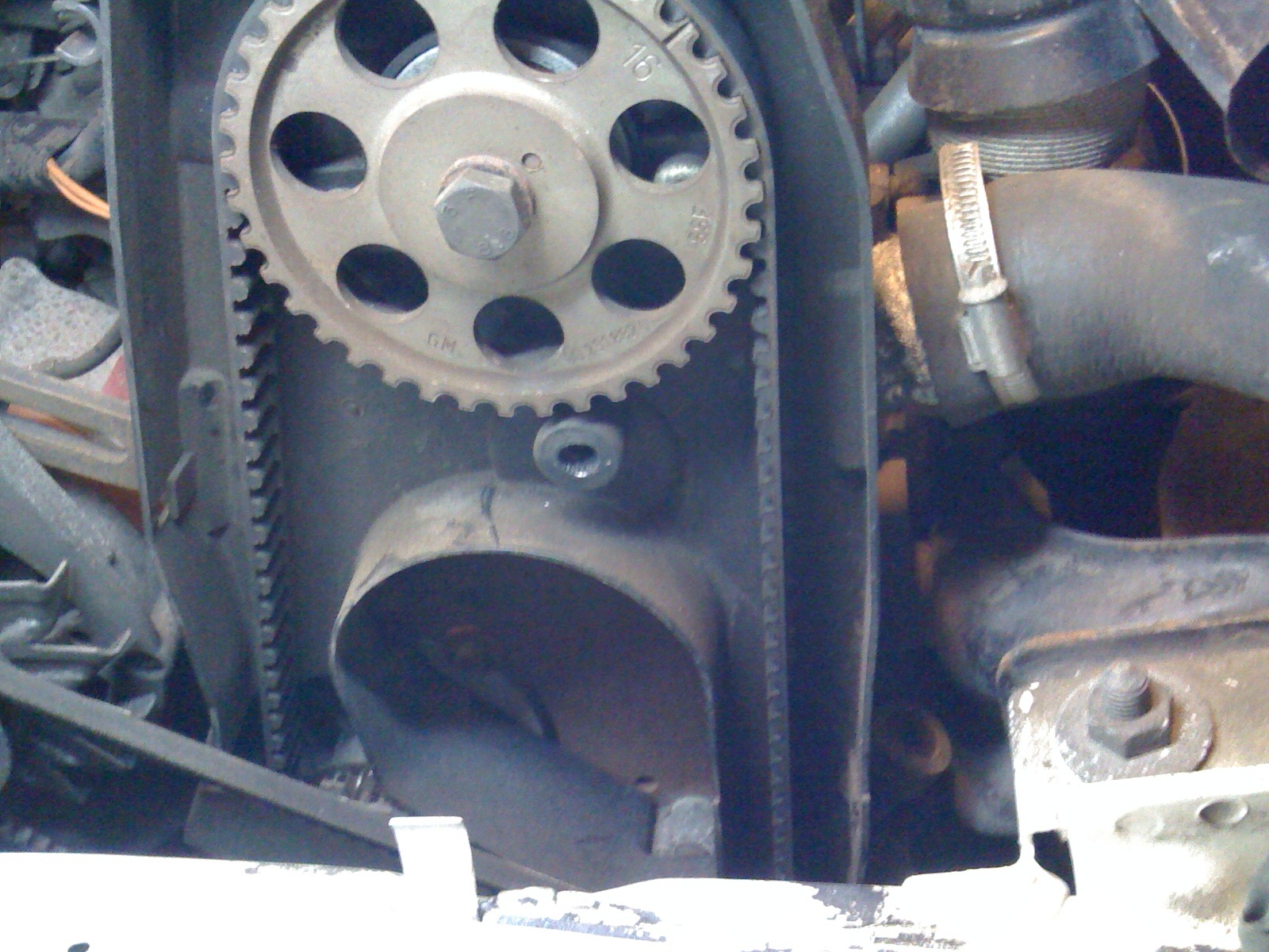 Ja sitzt am ende des Dicken Schlauches von deinem Bild! Also Zahnriemen muß auf jeden Fall runter und die beiden oberen Schrauben der Verkleidung müssen ab, denn kommste ans Thermostat....