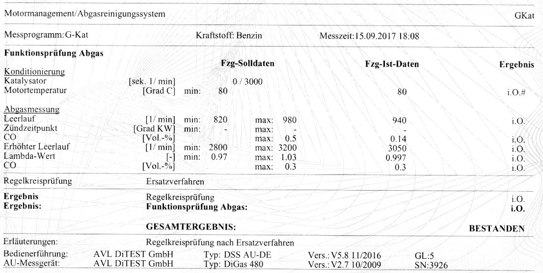 Leider wird die Lambdasondenspannung im Leerlauf nicht angegeben: aber da der CO gut ausschaut, dürfte da kein Problem mit Falschluft vorliegen.