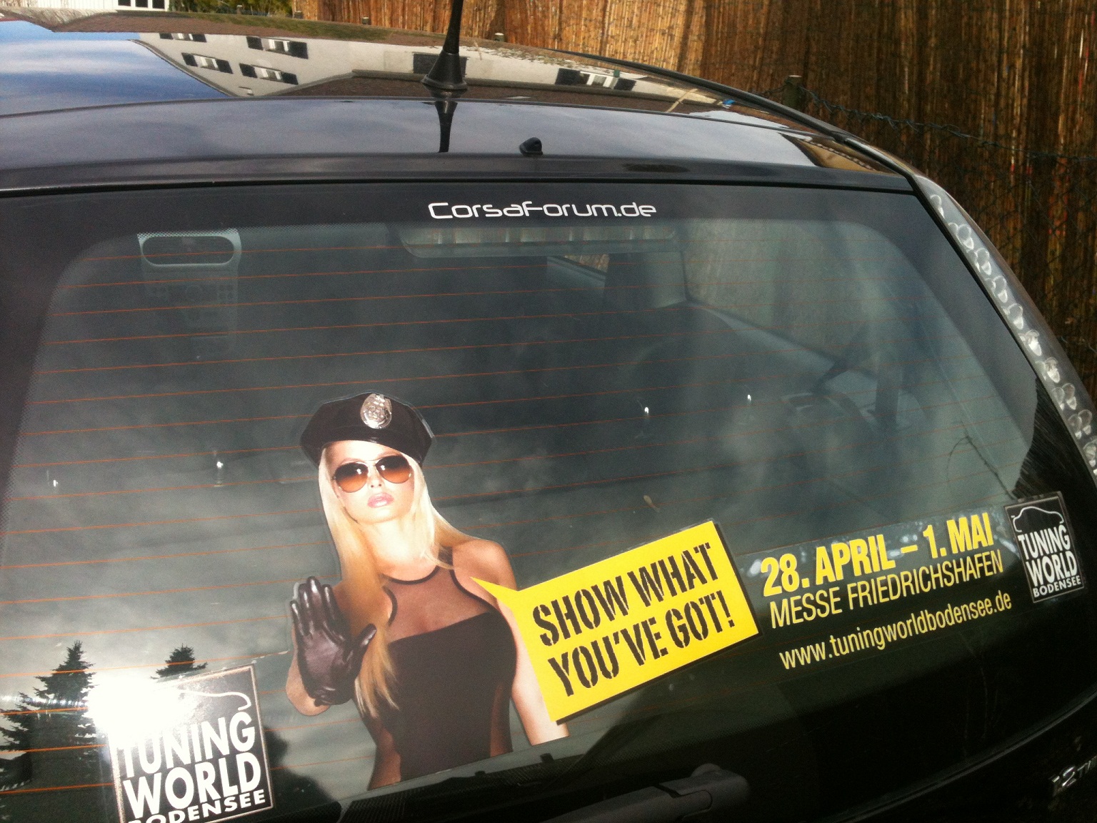 Hallo, na endlich hab ich was über Aufkleber gefunden!!! Ich hätte gern 2 stück, will die mir hinten an die beiden Seitenscheiben kleben!!!