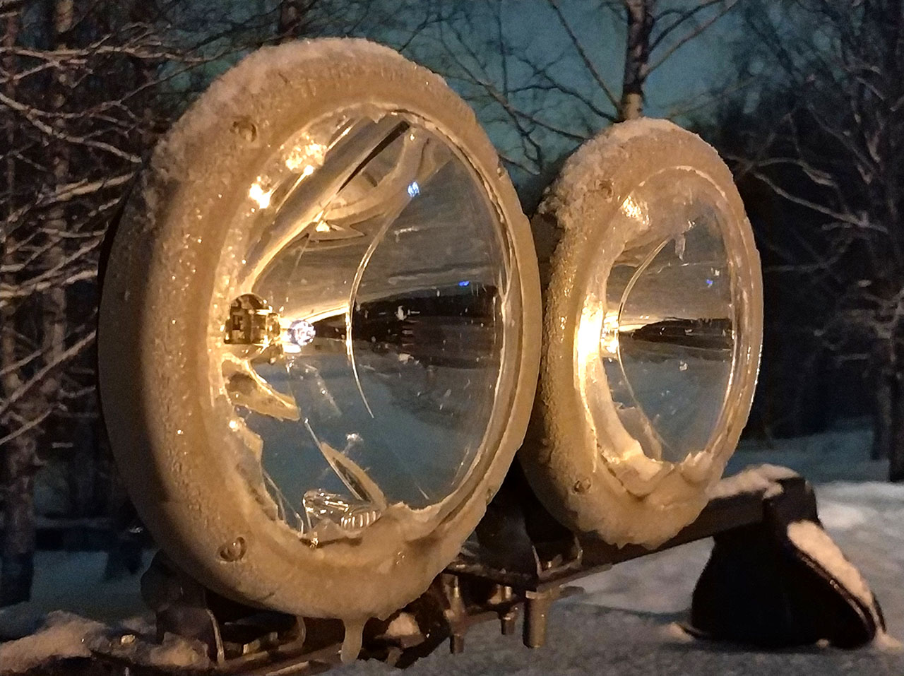 Es gibt bisher nur zwei Auffälligkeiten, die aber kein Problem darstellen. Wenn dichtes Schneetreiben herrscht, dann ist der Schnee vor der Scheibe jetzt heller als normal, manchen könnte das blenden, mich störts nicht. Und bei exzessivem Einsatz von Scheibenwischwasser landet das auf den Scheinwerfern. Allerdings halte ich sowieso oft an, um die Frontscheinwerfer zu reinigen, dann kann ich auch das Eis von den Dachscheinwerfern entfernen.