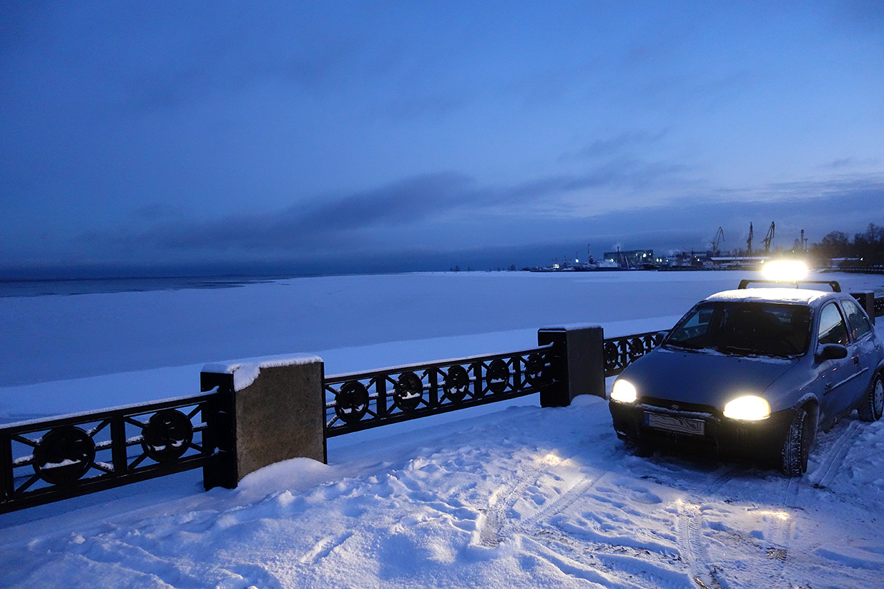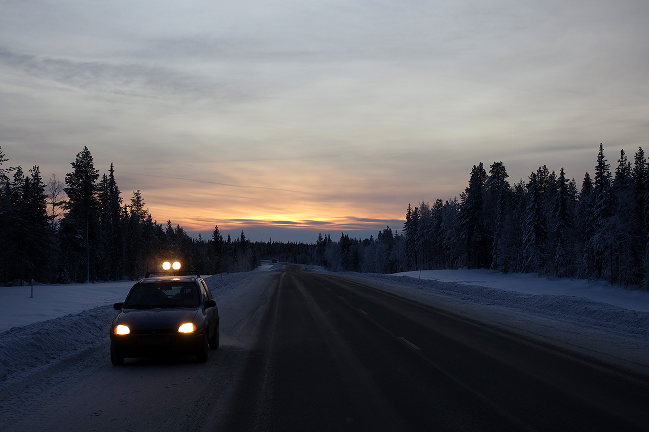 In Sortavala war es schon so weit nördlich, dass es fast den ganzen Tag wie Dämmerung war. Dort habe ich dann die Zusatzfernscheinwerfer endgültig montiert.