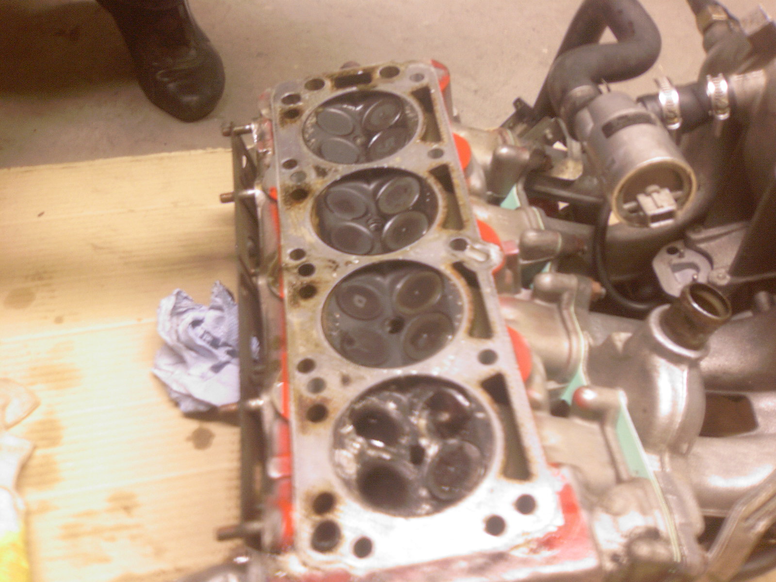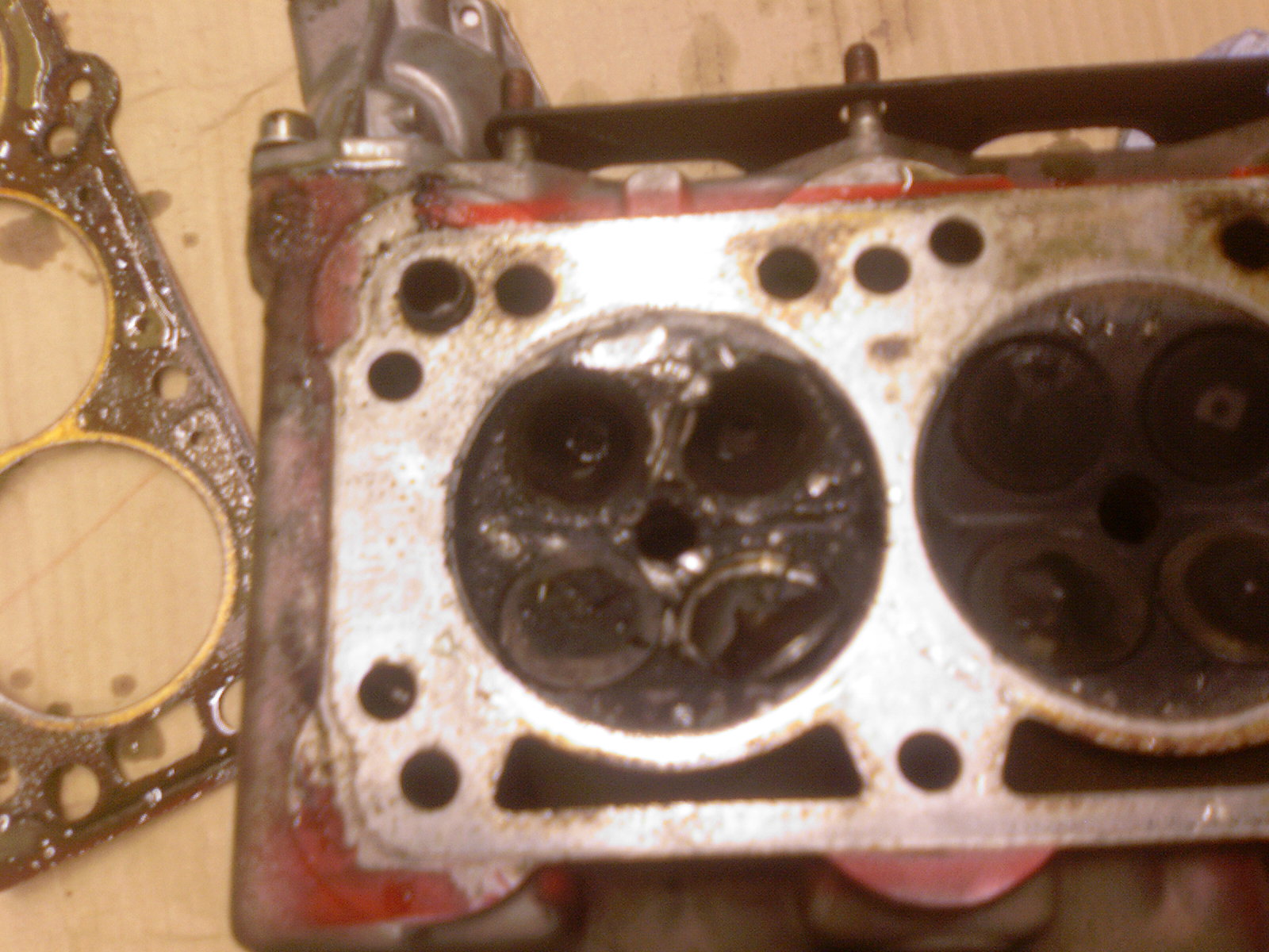 So, heute wurd der Zylinderkopf runtergerissen, ich ahnte schon böses als die Zündkerze aus dem 1. Zylinder drausen war - das glich keiner Zündkerze mehr, sondern eher einem ausgedrückten Zigarrenstummel.