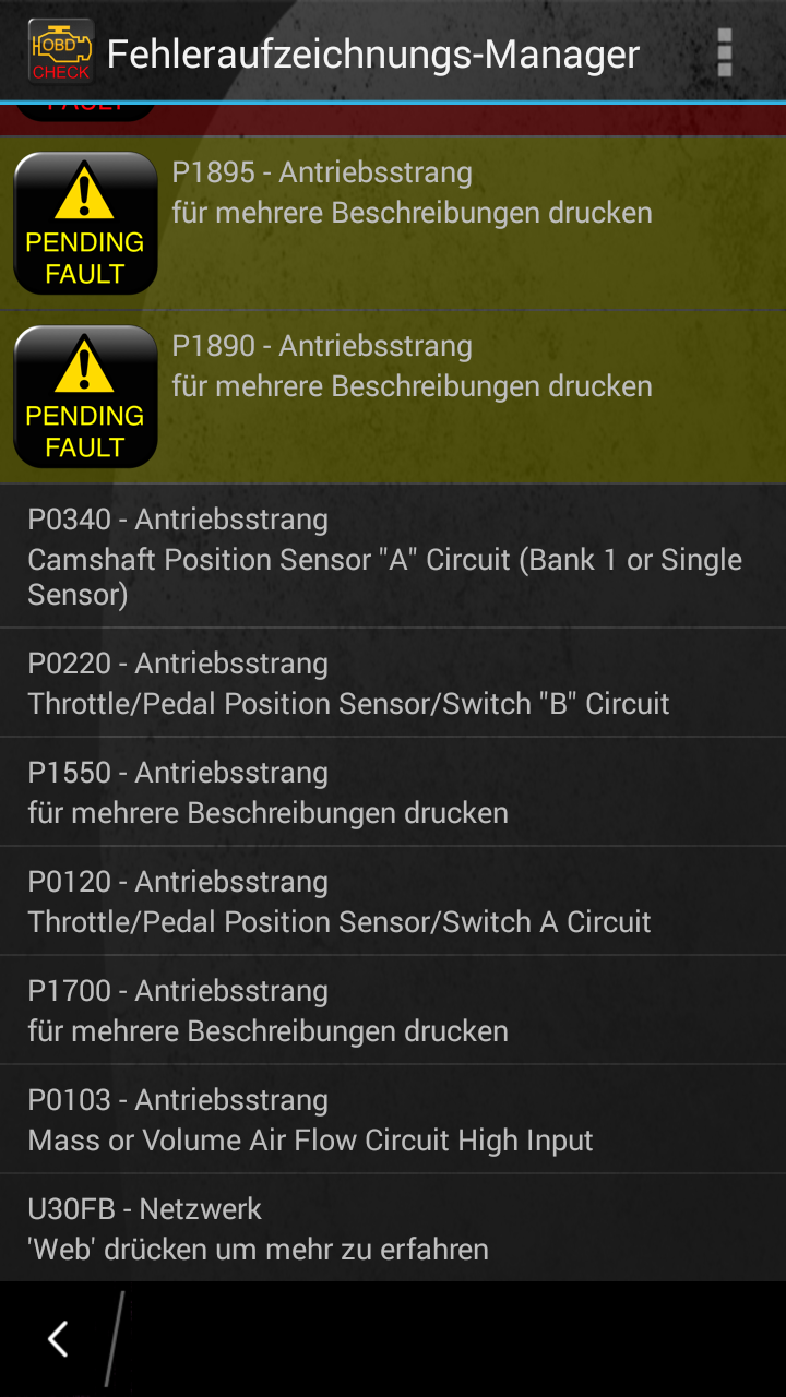Alle mit P genannten Codes beziehen sich aufs Motormanagement (P=Powertrain) und die mit U vorn sind CAN_Bus Fehler. Dann hast du ja eine Kombi angezeigt aus Motor und Antriebsstrang-Fehlern.