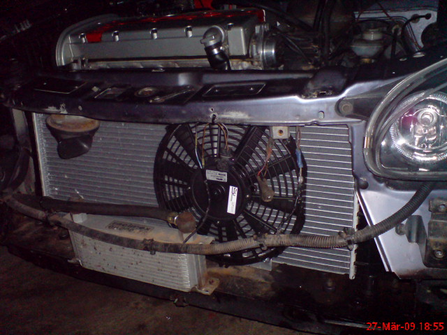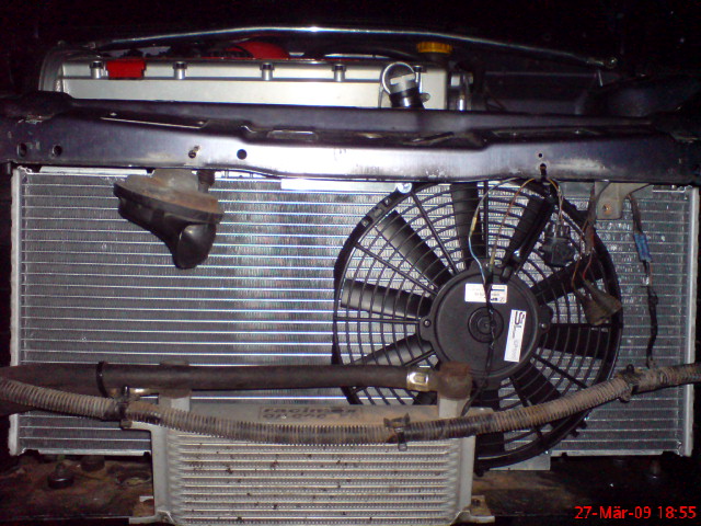 micha den lüfter hättest du auch weiter rechts anbauen können dann hättest du die hupe nicht versetzen müssen.ich hoffe du hast dran gedacht was ich dir wegen den lüftern gesagt hab. So wie der lüfter jetzt angebaut ist muß der lüfter ein blasend sein .