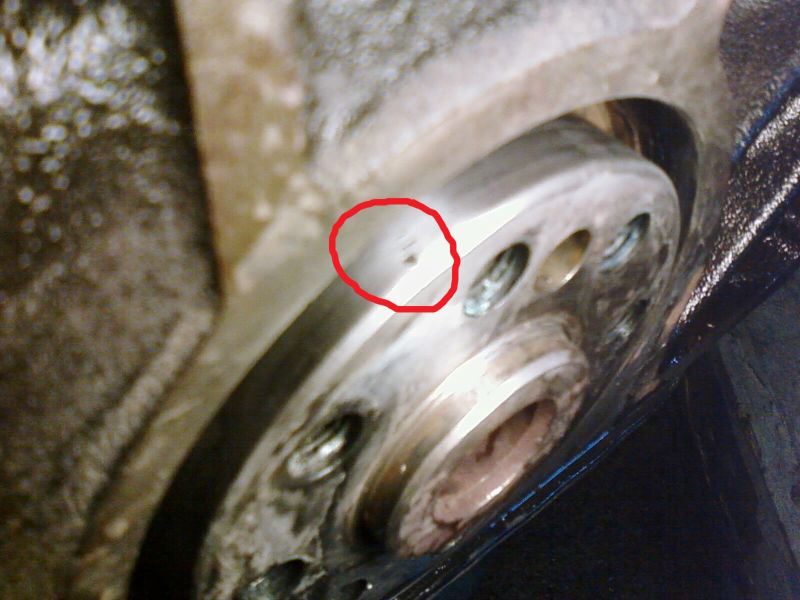 Also den neuen Ring wieder raus und dabei sind mir zwei,drei kleine Kratzer im Bereich der Kurbelwelle aufgefallen. Wahrscheinlich hat da schon mal einer den Simmerring mit Gewalt rausgehebelt.Die sind auch mit dem Finger fühlbar. Hab mal nen Bild von der grössten Stelle gemacht, leider nur mit ner Handycam, also nicht sehr scharf.Vielleicht hab ich aber auch beim Einbau einen Fehler gemacht.