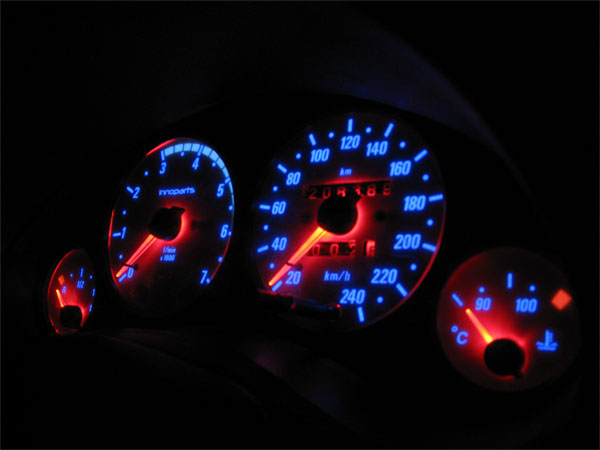 - blaue Plasmatachoscheiben (bis 240 km/h) mit rot beleuchteten Corsa C-Tachonadeln