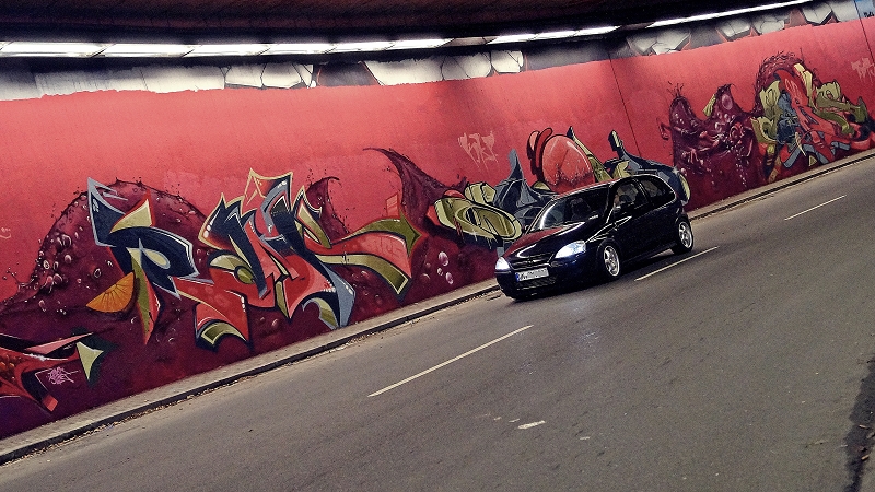 Die Fotos vor der Graffitti-Wand sind schon beneidenswert. Soetwas gibt es hier einfach nicht. Schade, mir gefiele das auch.
